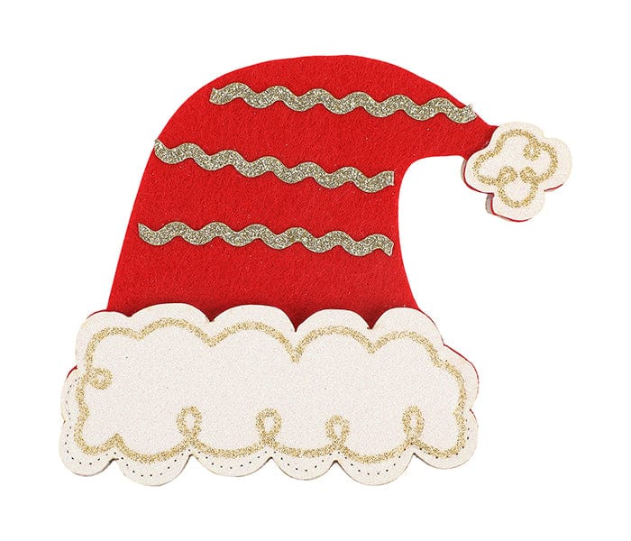 Top off your gifting game! This jolly red felt Santa hat-shaped gift card holder brings instant holiday cheer with glittery gold squiggles and a fluffy white trim that screams festive fun. Just tuck in a gift card and you’ve got the cutest stocking stuffer or holiday party surprise ever - no wrapping paper needed!