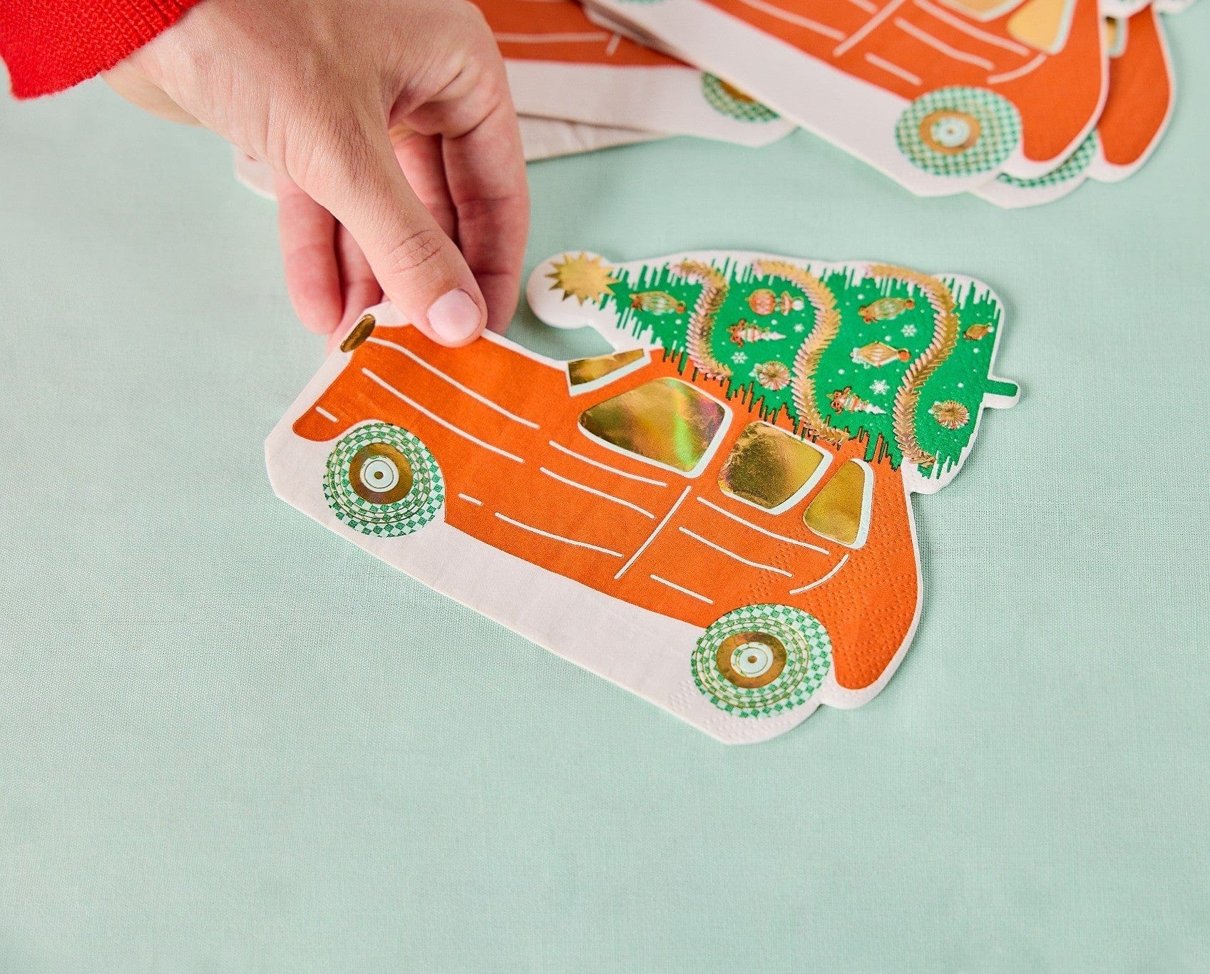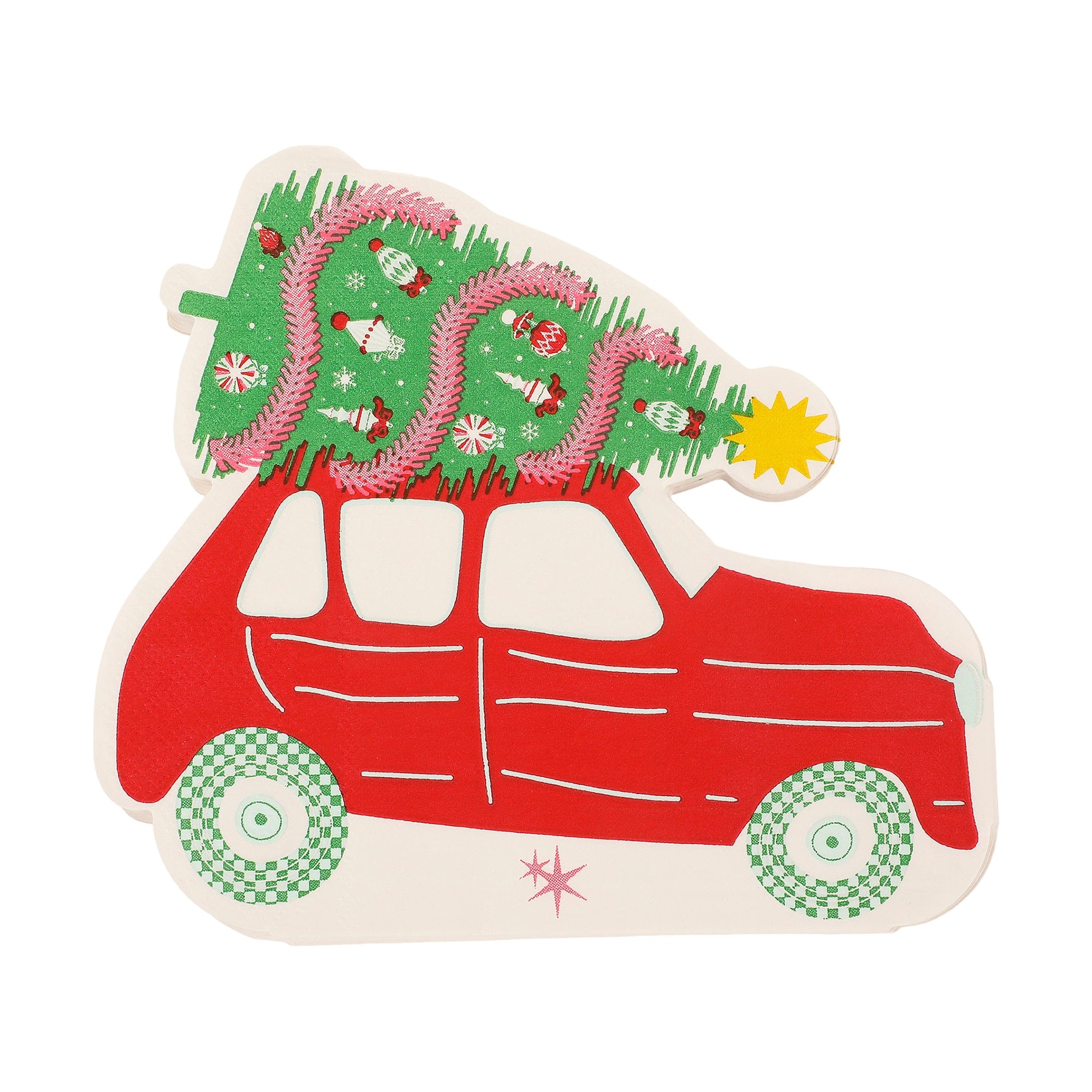 Deck the halls (and your table) with our Home for the Holidays Diecut Cocktail Napkins! Featuring a cheerful red car topped with a festive tree and gold foil accents, it’s a nostalgic nod to holiday road trips and cozy traditions. A must-have for merry meals or dessert spreads!