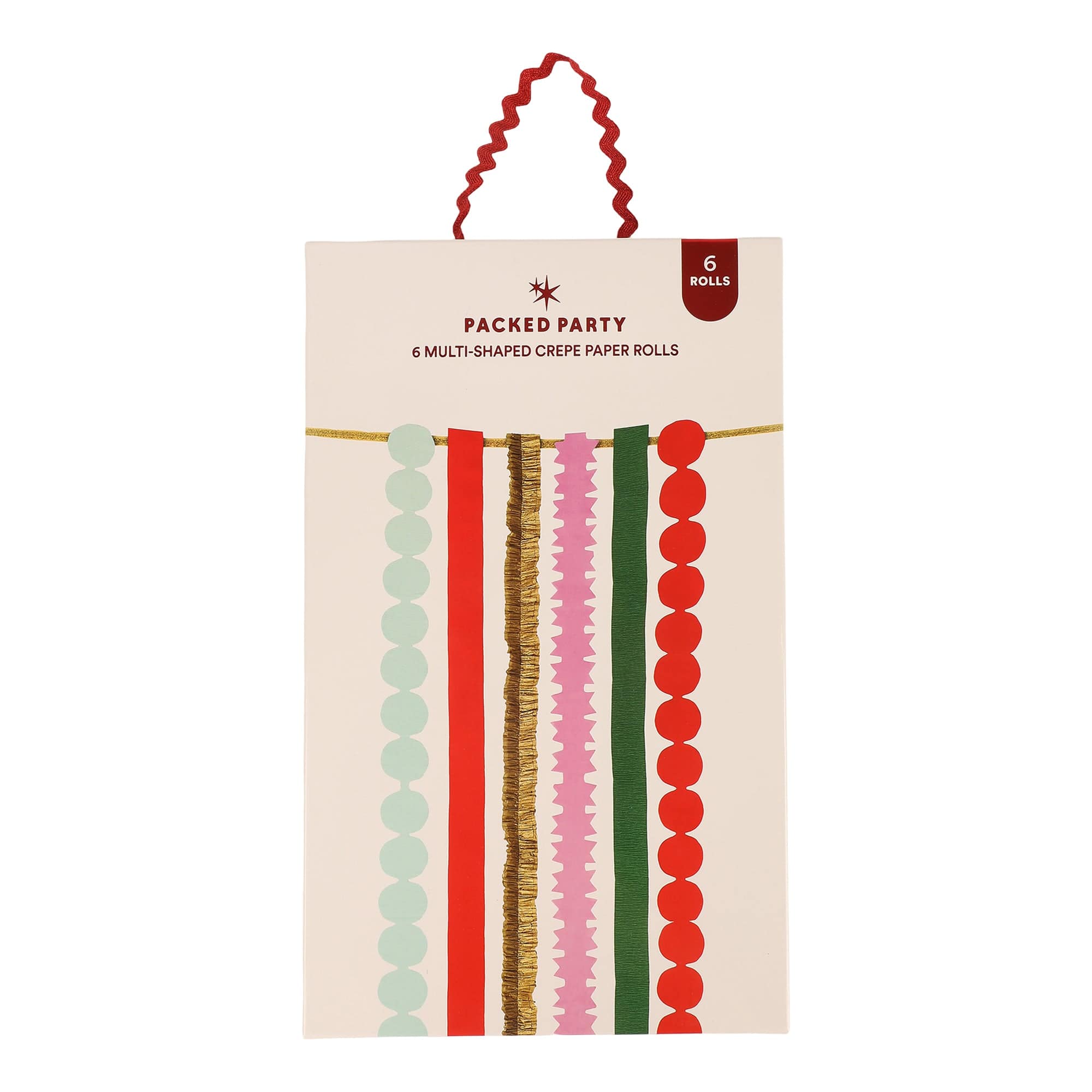 Turn any wall into a festive photo backdrop with our Holiday Hues Party Streamer Kit! Featuring bold strands in pink, red, green, and metallic crepe paper, this easy-to-hang streamer set instantly brightens up holiday parties, gift exchanges, and more! This crepe paper banner kit features a playful mix of shapes and colors - perfect for creating a photo-ready party wall, jazzing up a dessert table, or adding instant fun to any space. Lightweight and reusable, it's a must-have for creating picture-perfect moments for all of your Holiday events!