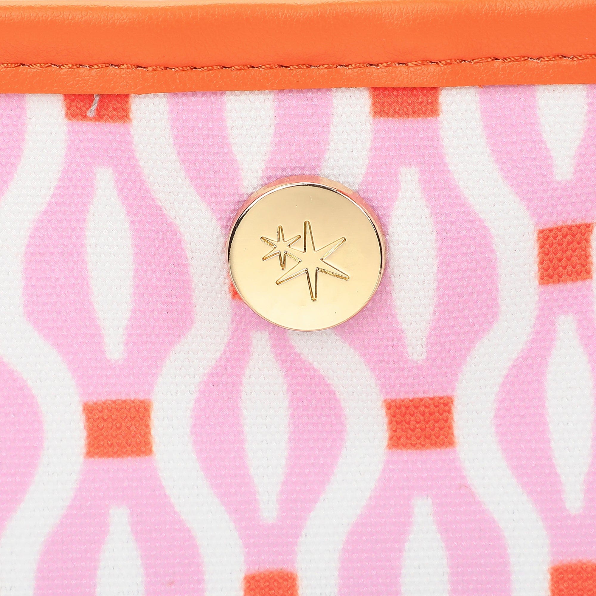 Meet your new go-everywhere essential: the Geo Chich Everyday Tote with Wristlet. Designed in durable printed coated canvas, this roomy tote features a chic allover pattern, leatherette straps and binding, and a detachable matching wallet pouch for easy organization on the go.