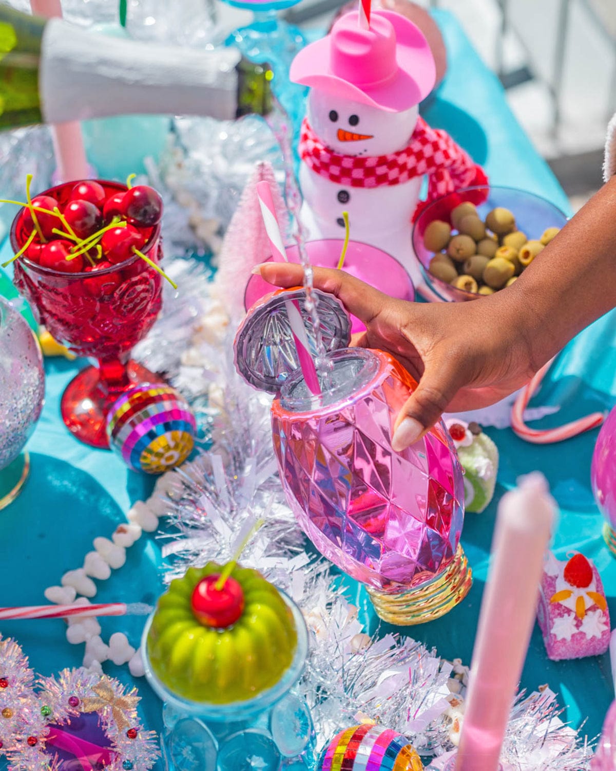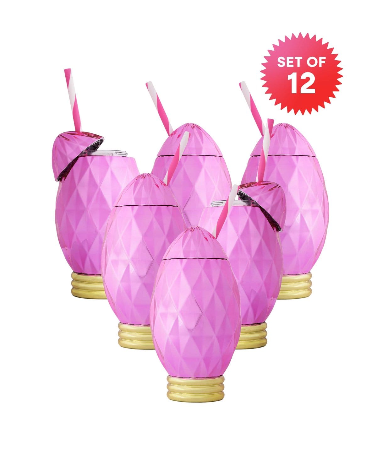 - Pink faceted sipper with striped pink and white straw