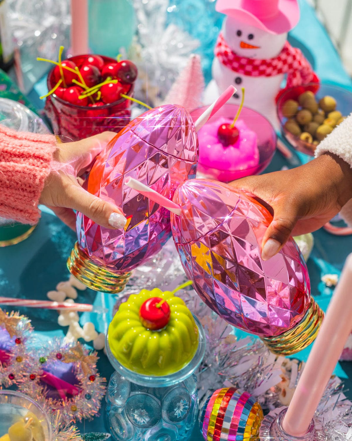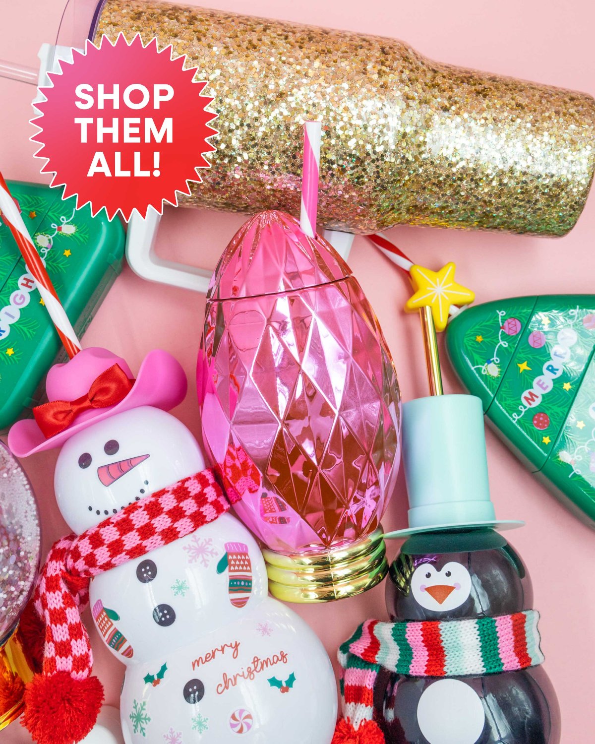 Keep things extra bright this year with our Pink Vintage Christmas Light Sipper! This signature tumbler features an extra glossy faceted finish and a striped straw too. Snag this sipper for your next holiday party, NYE celebration, office Secret Santa, or just for yourself as you sip your way into a serious holi-daze.
