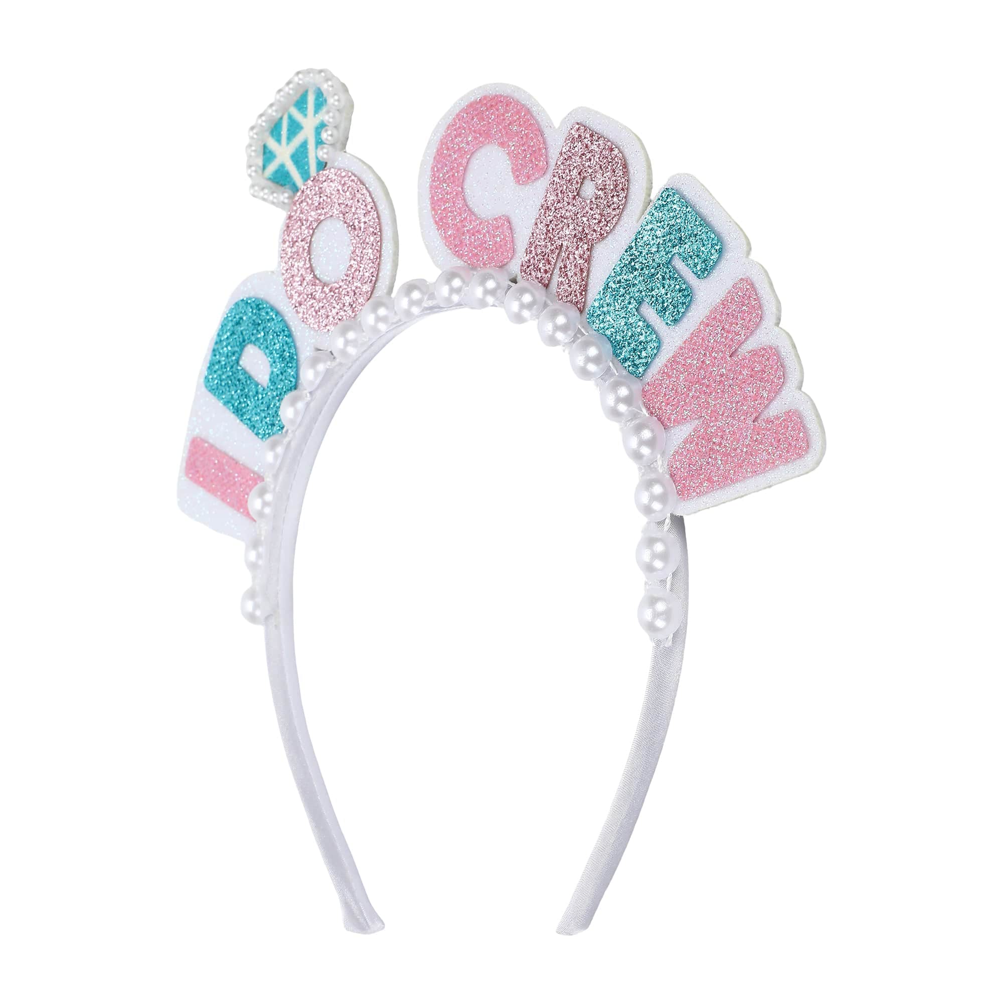 Perfect for group photos, party favors, or gifting to your bridesmaids before the big celebration begins. Because every bride needs a crew - and every crew needs a little sparkle. Includes: 4 novelty headbands Design: “I Do Crew” glitter felt words with pearl accents.