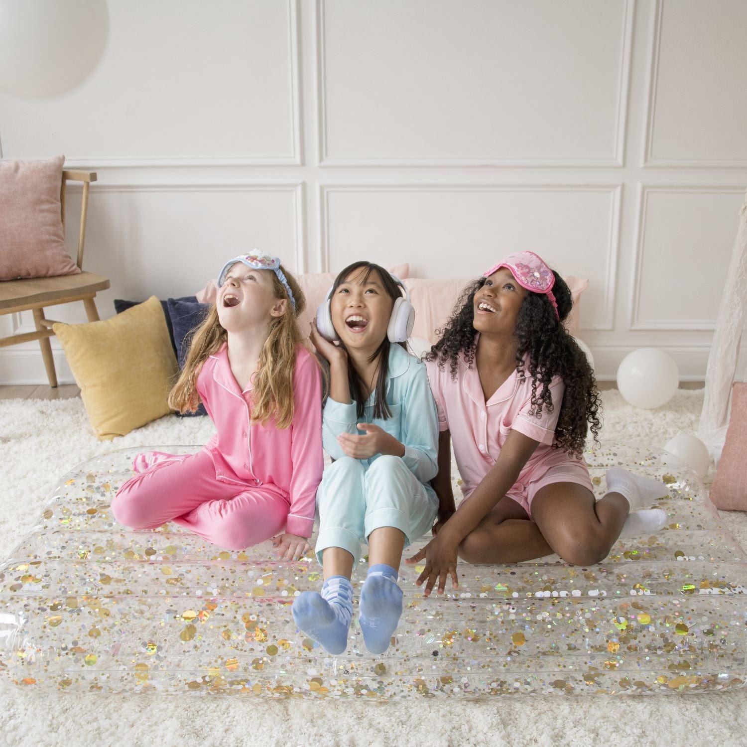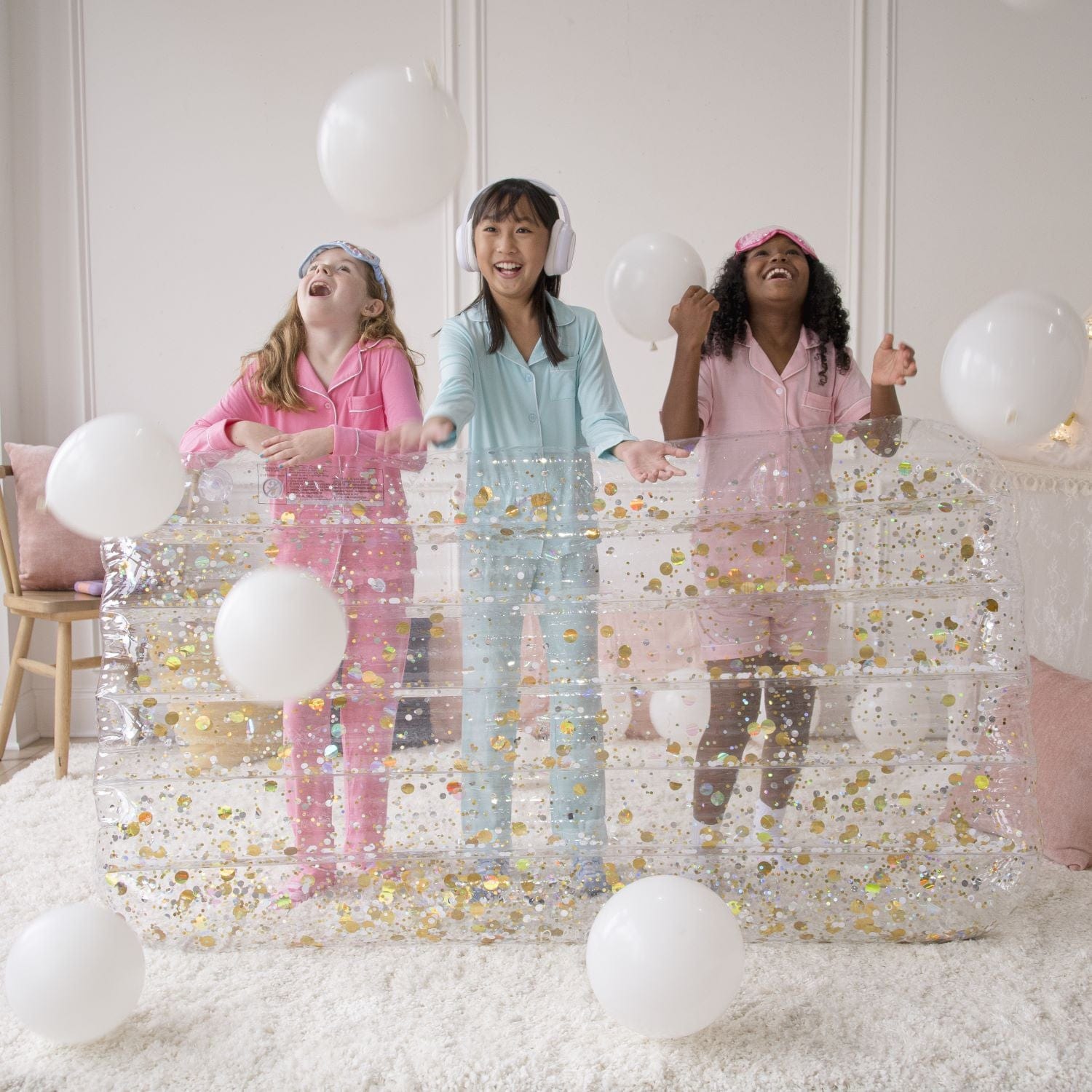 Kick back and relax with this inflatable confetti lounger bed perfect for hanging out and sleepovers. Packed with gold confetti and made of heavy duty vinyl, this lounger is sure to impress! Get comfy and snuggle up party girl.