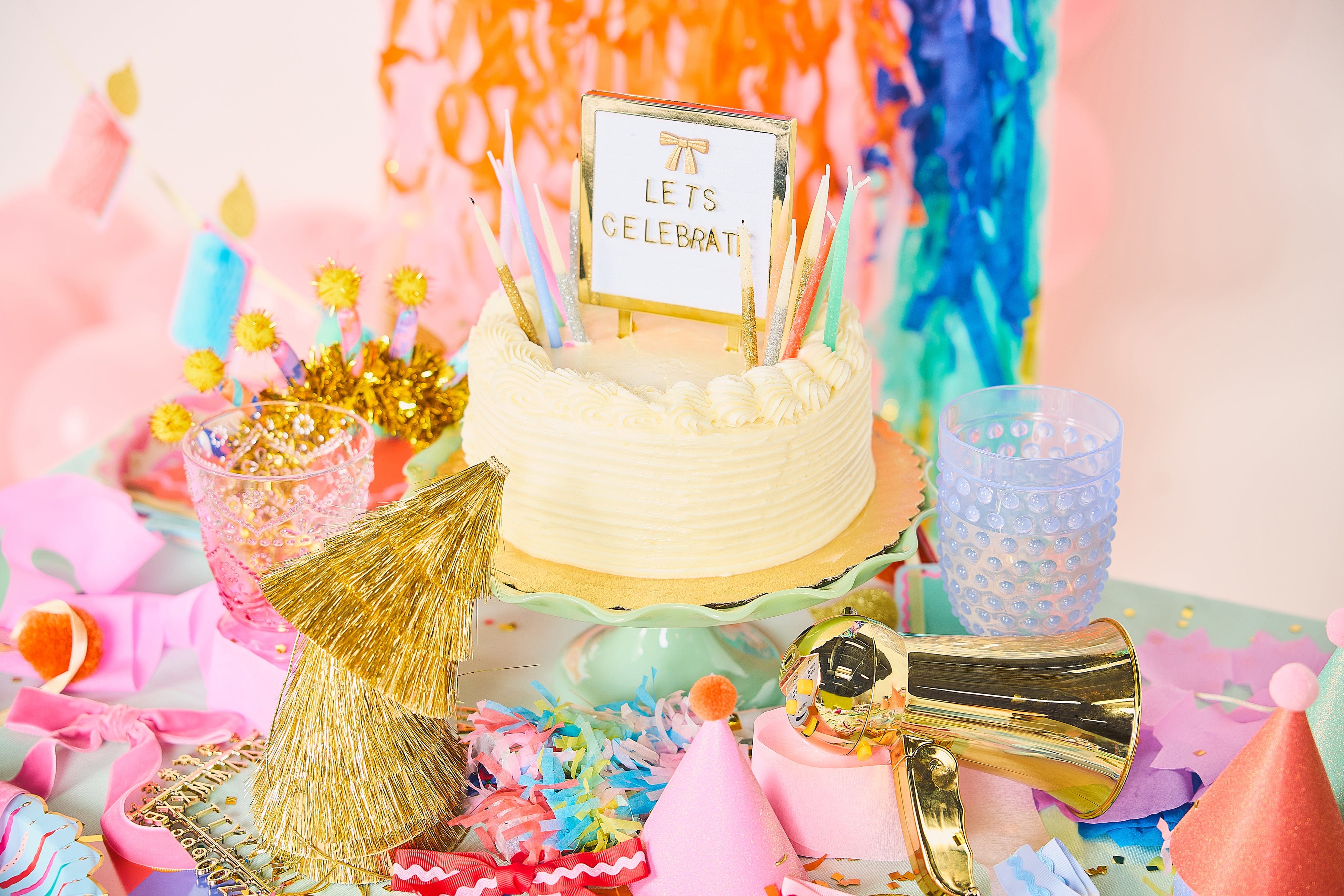 Personalize your dessert table with the Packed Party Lovely Little Letterboard Customizable Cake Topper! This gold-plated beauty is all about you. You can customize it with any message you want, making it perfect for birthdays, anniversaries, or any occasion that calls for a personal touch. Whether you're spelling out "Happy Birthday" or "Congrats, you did it", this topper adds a little luxe and a lot of love to your sweet treats!