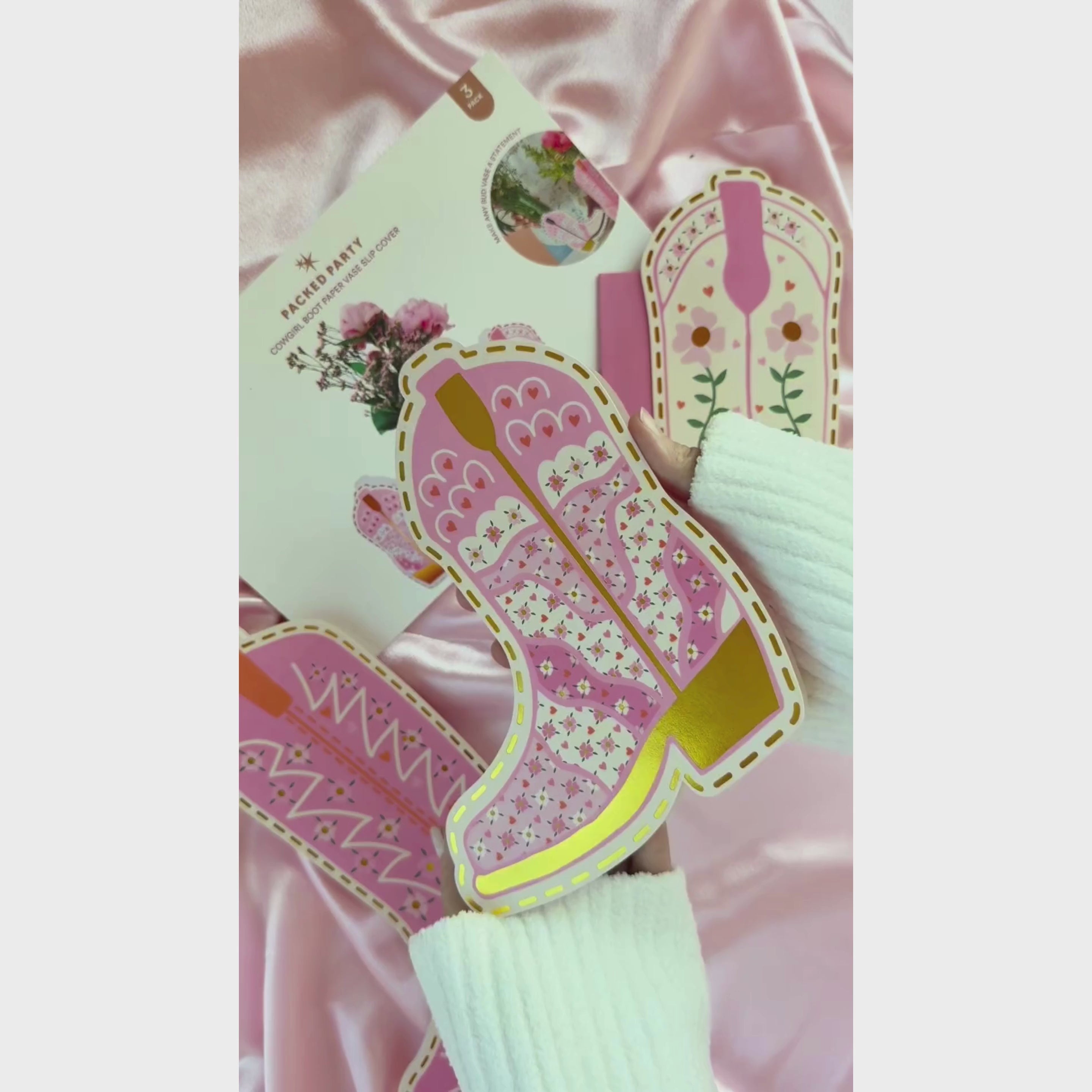 Kick up your tablescape with the Boot Scoot Blooms Pop-Up Vase Slip Covers! This set comes with pink cowboy boot-shaped vase sleeves in three different sizes to fit your favorite blooms in the cutest way possible. Just slip 'em on top of your vase, pop in your flowers, and let the compliments roll in!