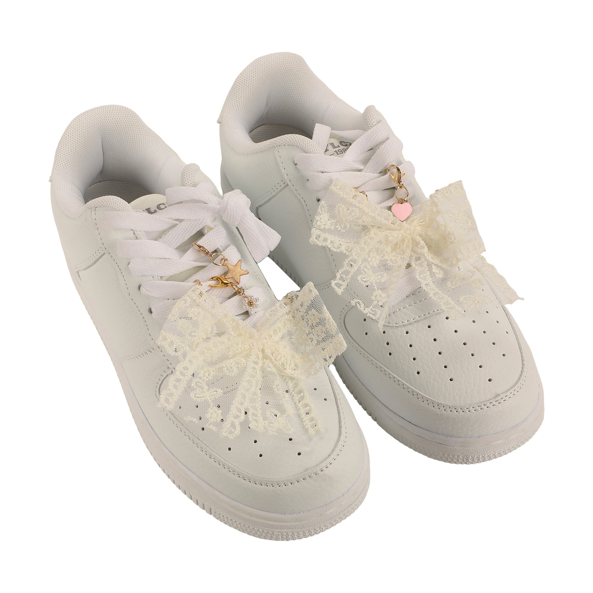 This 5-piece shoe charm set is the ultimate way to add playful flair to your kicks, featuring a dainty lace bow, gold star, sweet heart charm, and a beaded flower. Each charm is easy to attach and guaranteed to turn heads. Whether you're headed to class, a party, or just running errands, your kicks will thank you. Because everything's better with a bow, especially your shoes!