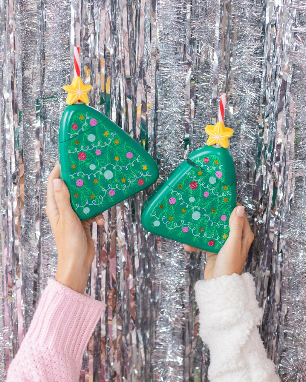-Patented Christmas tree sipper with red stripe straw & star straw attachment
