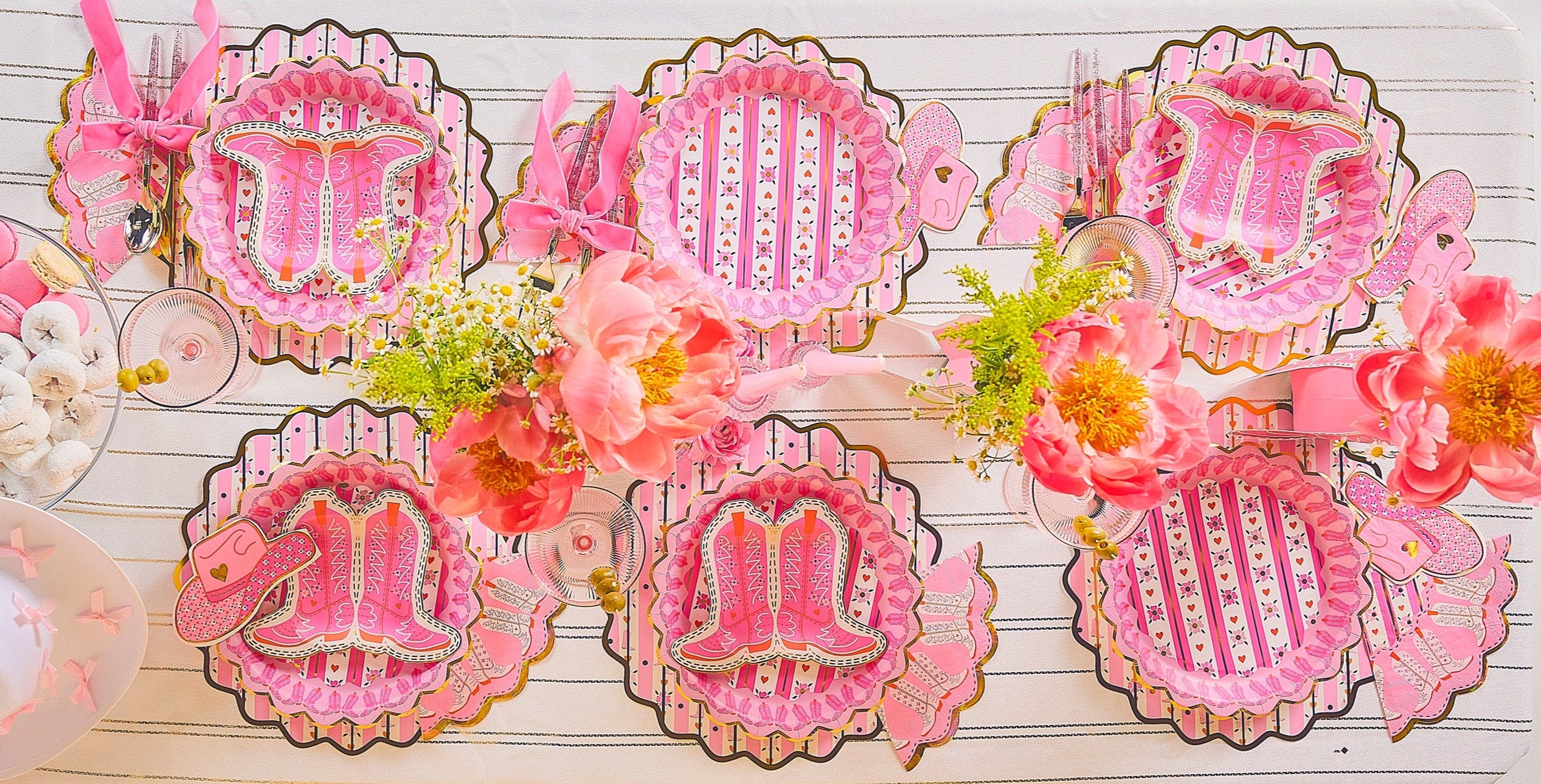 Kick up your heels and celebrate in style with our Better with Boots collection - the ultimate western-chic theme for birthdays, bachelorette parties, bridal and baby showers, and any cowgirl-themed party! Featuring a mix of playful boot and cowboy hat designs, floral accents, and bow details, this curated kit has everything you need to host a party that’s equal parts girly and glam.