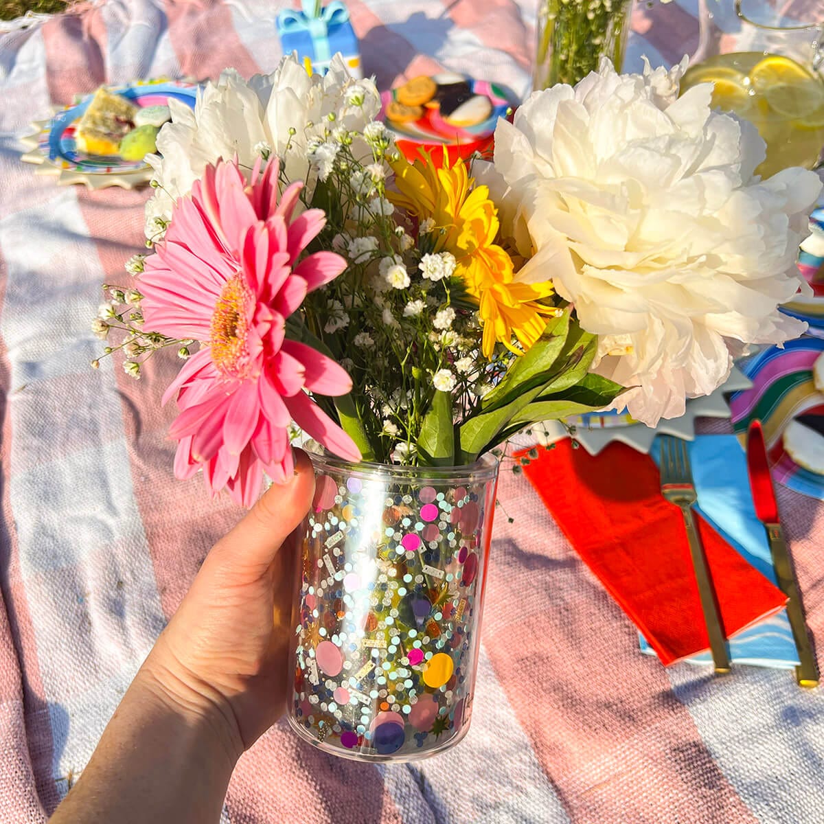 Celebrate your favorite teacher or coworker thanks to this fun bundle sure to make any desk a little brighter! Complete with 'Celebrate' confetti-filled pens, our ready-to-use confetti picture frame, pen cup that doubles as a flower vase and confetti clipboard too make this a must-have.