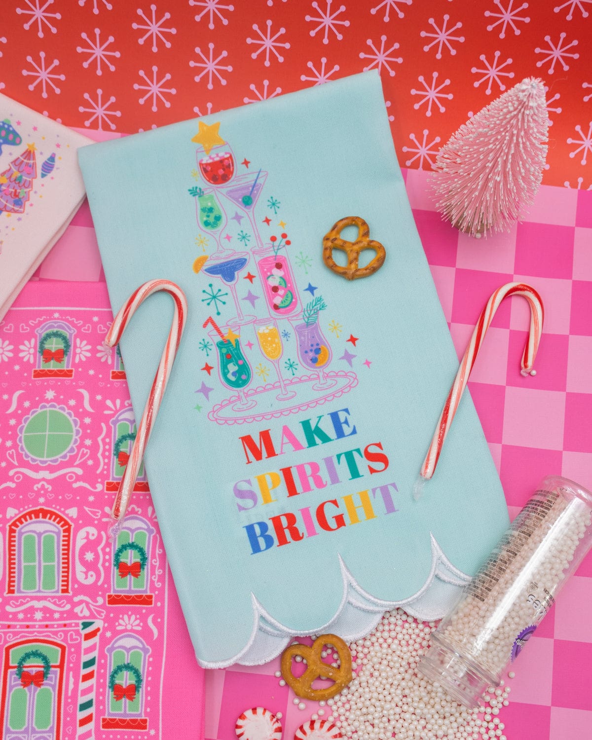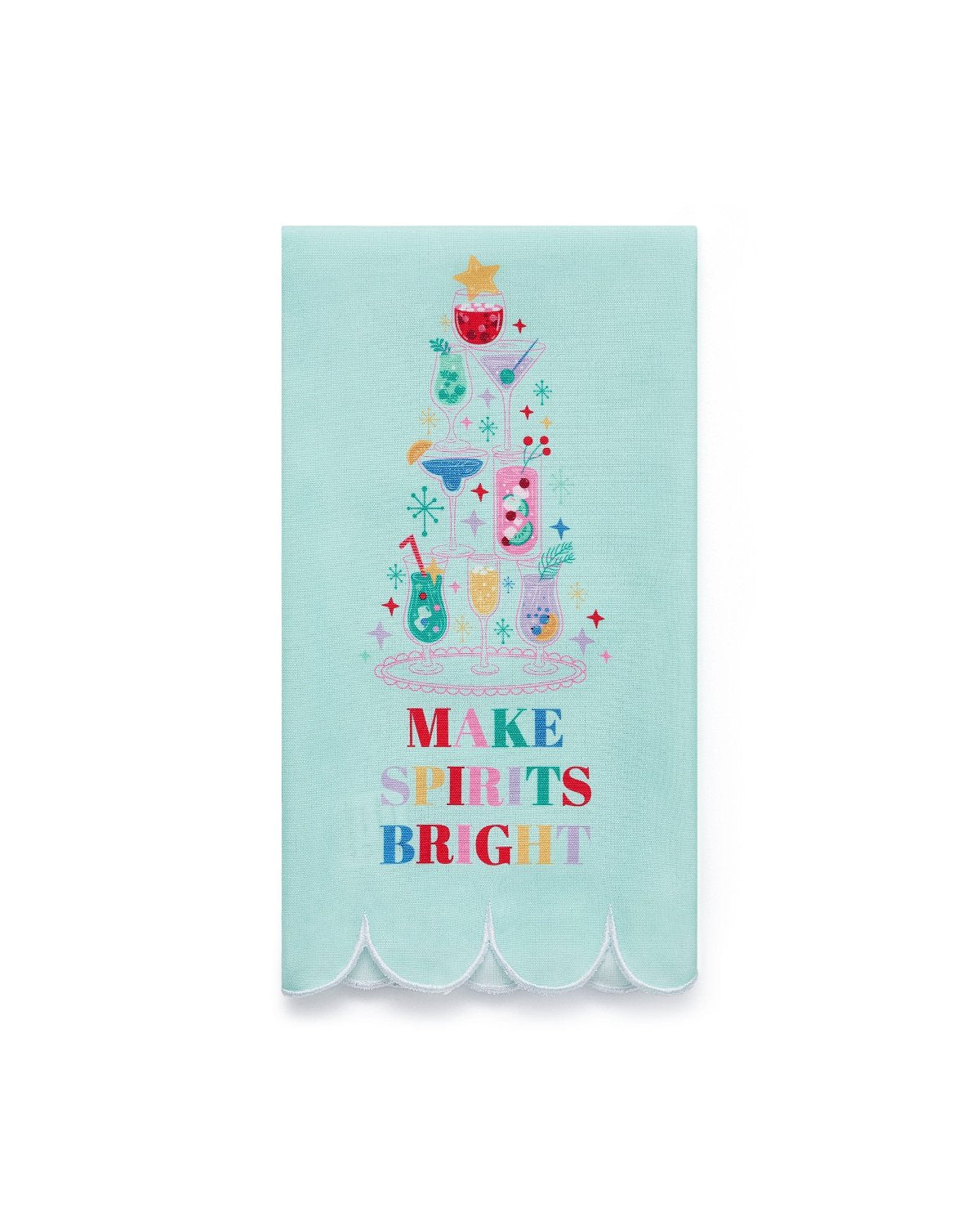 Make spirits bright this season with this festive tea towel! With a scalloped edge and cocktail-themed design, this tea towel is the perfect addition to hang on a bar cart, sink, oven - you name it! It's the perfect hostess gift or little something to make your kitchen a little merrier this holiday. Cheers to that!