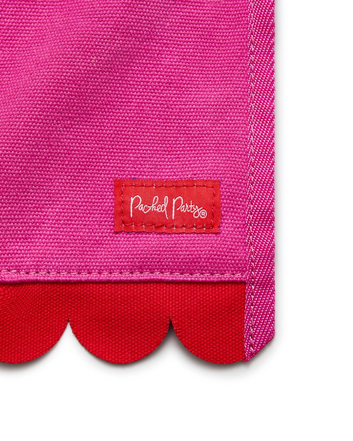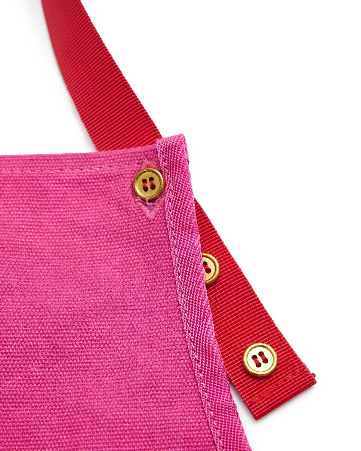 - Pink cotton apron with scalloped edge detail and adjustable buttons
