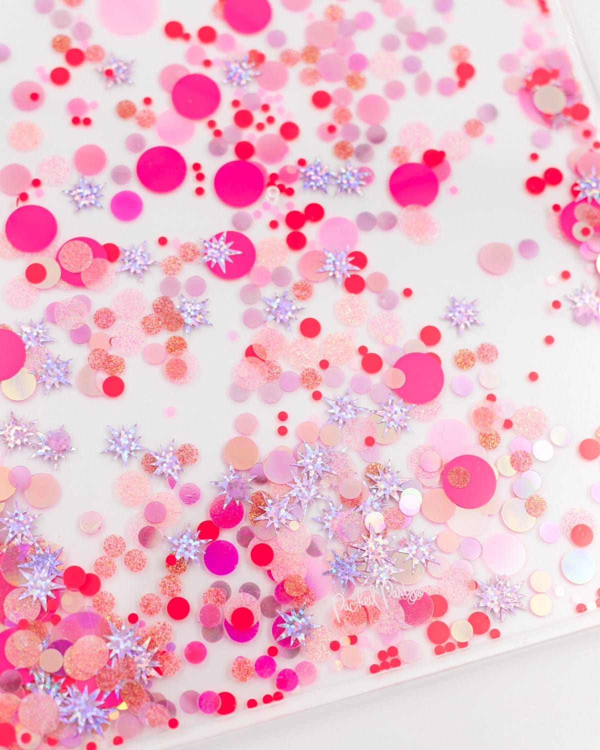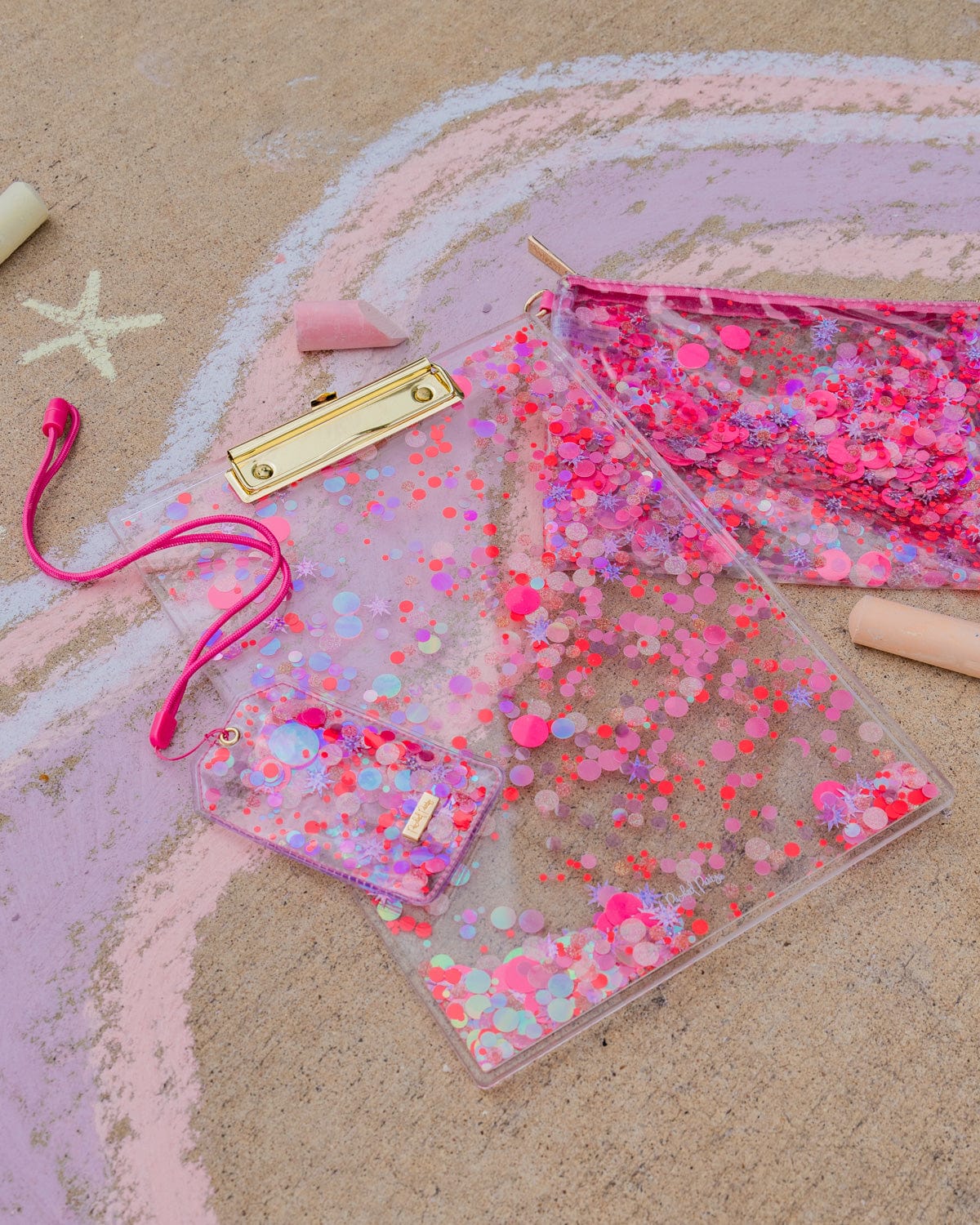 Ensure work is never boring thanks to this fun confetti acrylic clipboard! Packed with our Sweet Tart Confetti in a variety of pinks and featuring luxe gold hardware details, this is the ideal accessory for any student, nurse, teacher, or just to have handy and bring the fun!