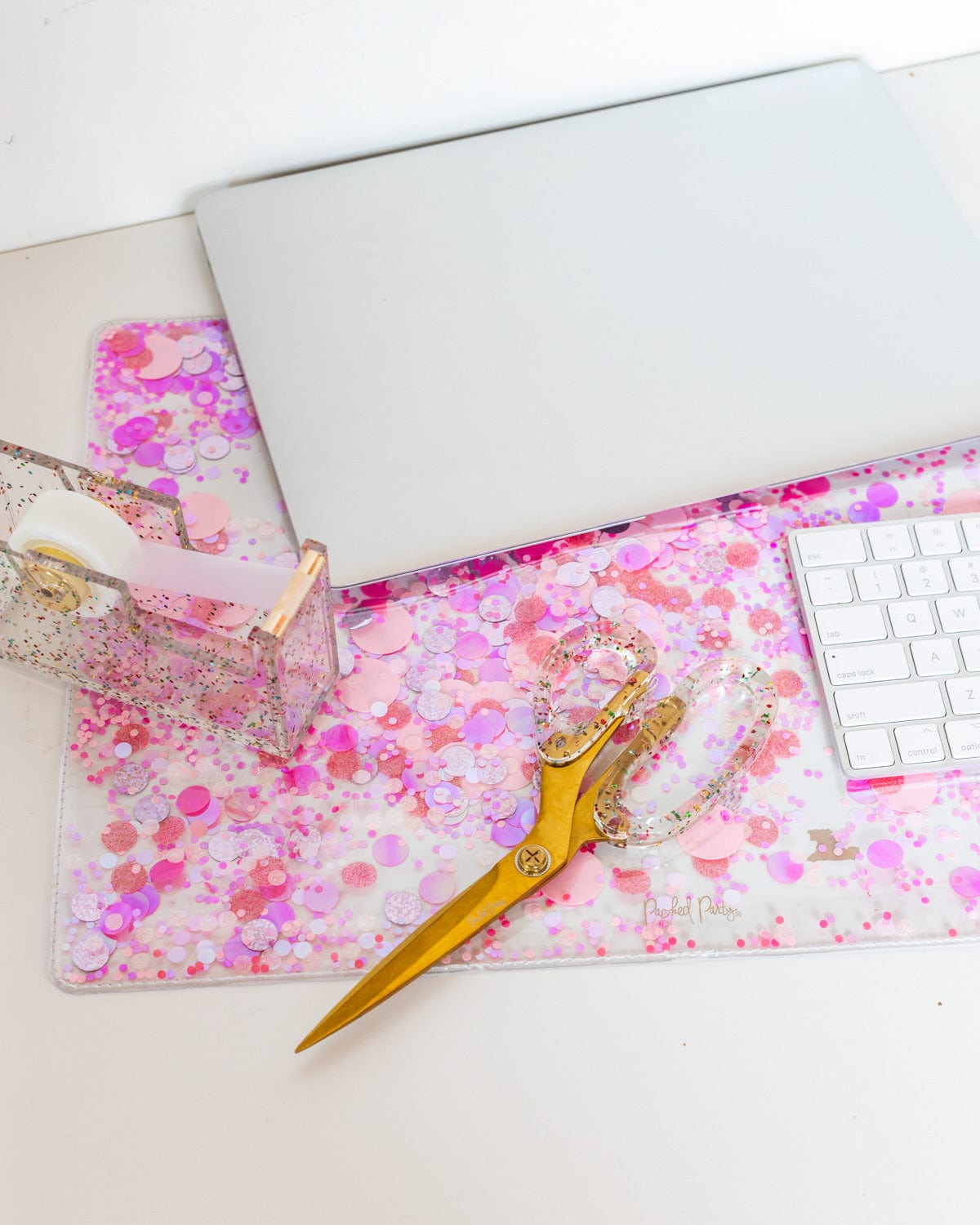 Make your desk a PARTY with this Confetti Party Multi-Use Mat! Large enough to fit both your keyboard and mouse and made of vinyl for easy cleaning, this cute desk mat is the perfect way to add a pop of color and some fun to your workstation. The best part: it doubles as a placemat!