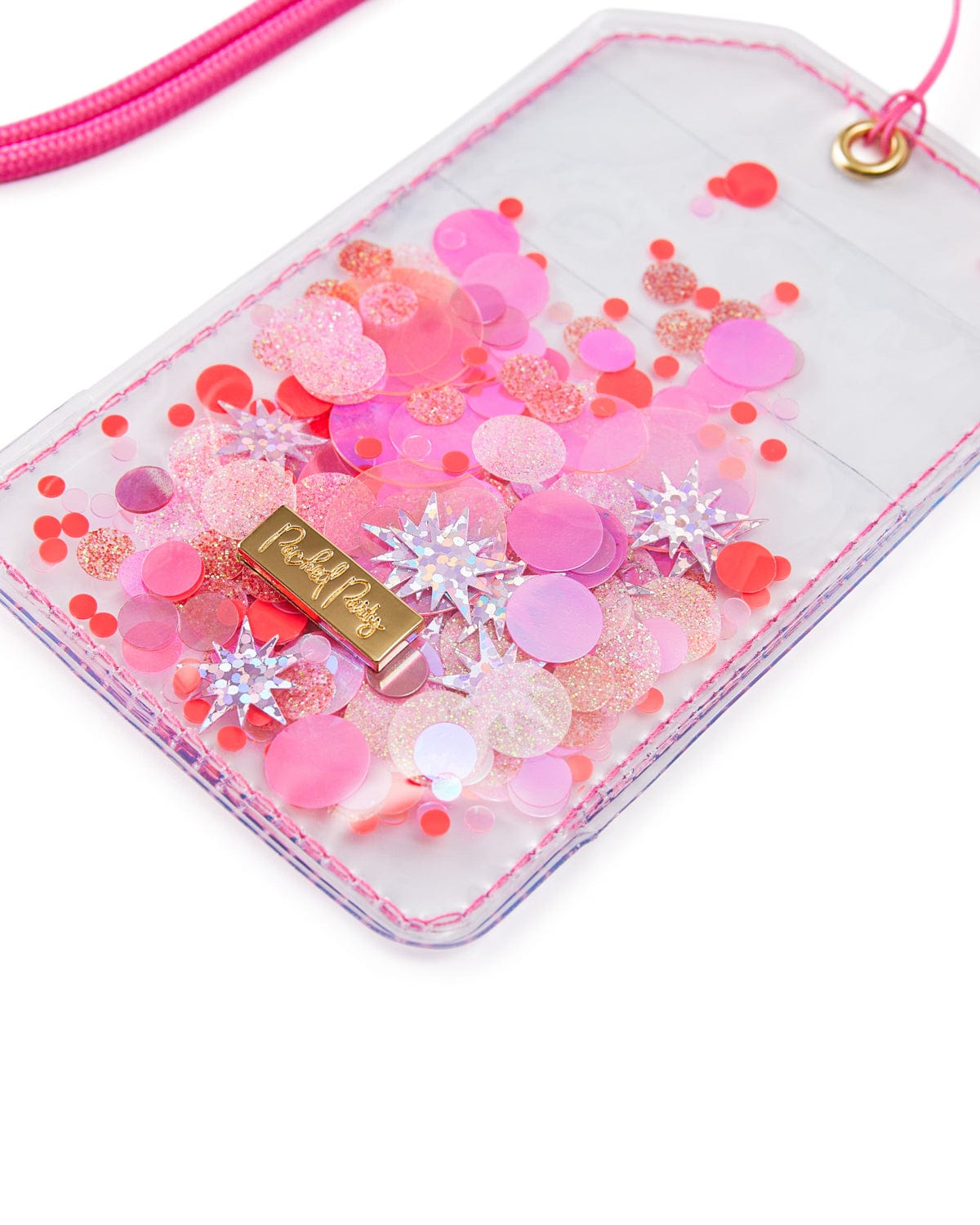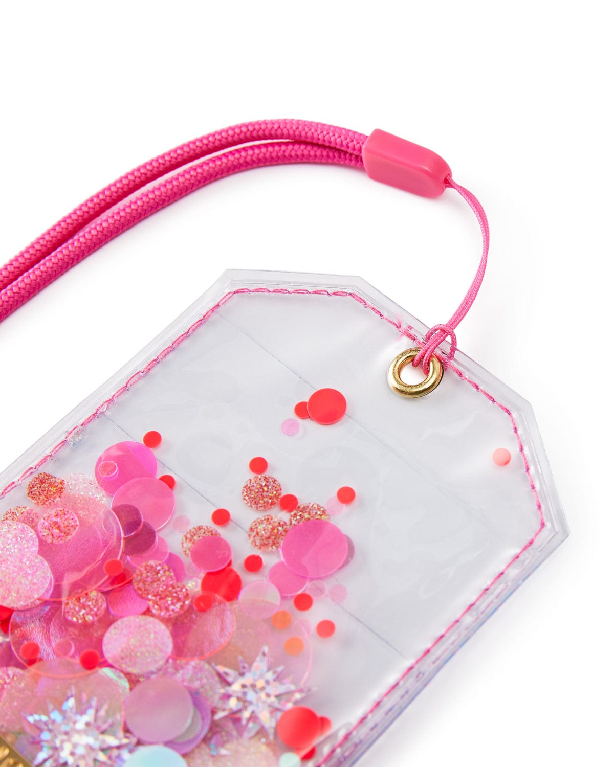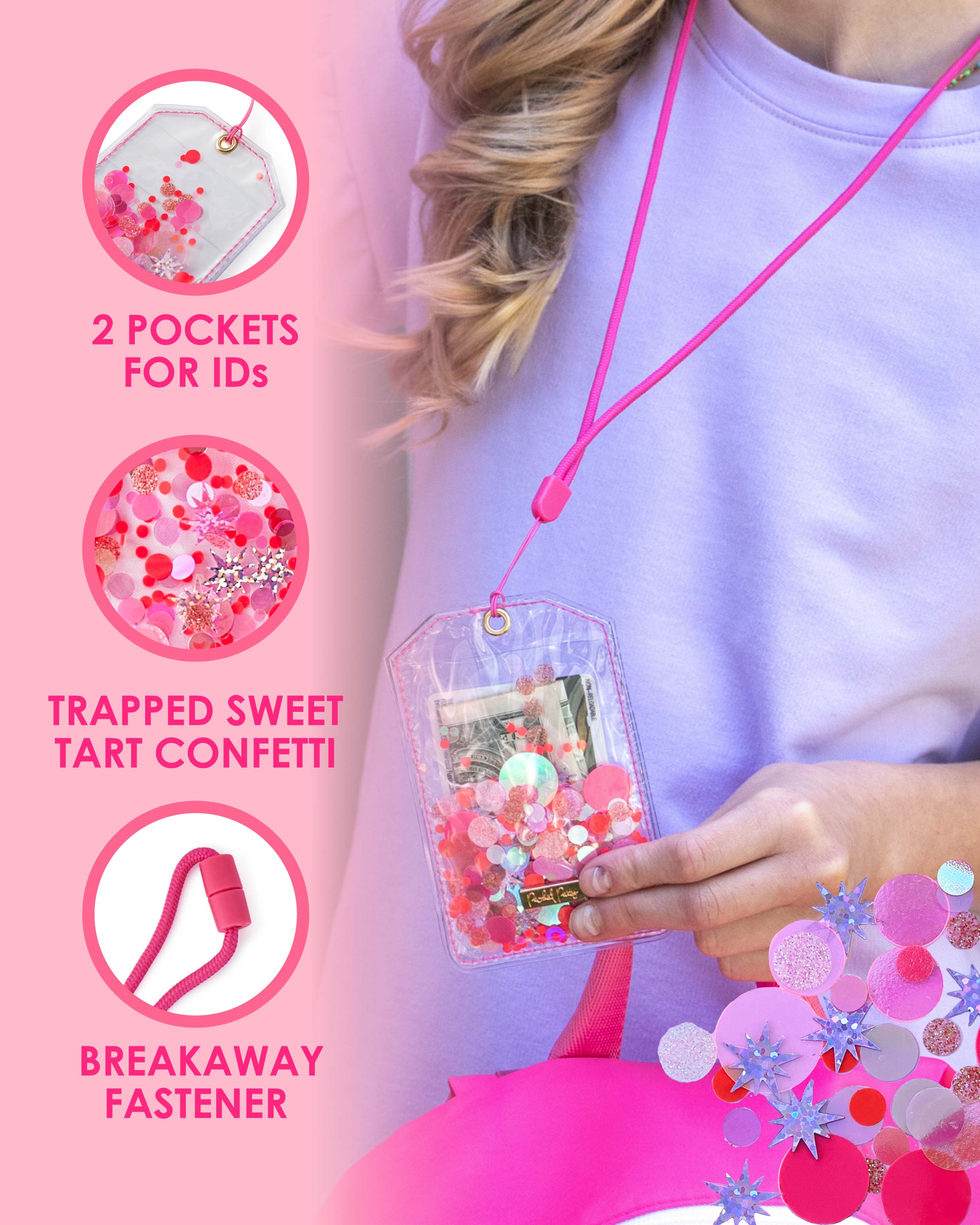 Make your keycard or ID badge more fun with this confetti lanyard! Featuring our Sweet Tart pink confetti and two card pockets, this lanyard is the perfect accessory for students, nurses, or anyone really!