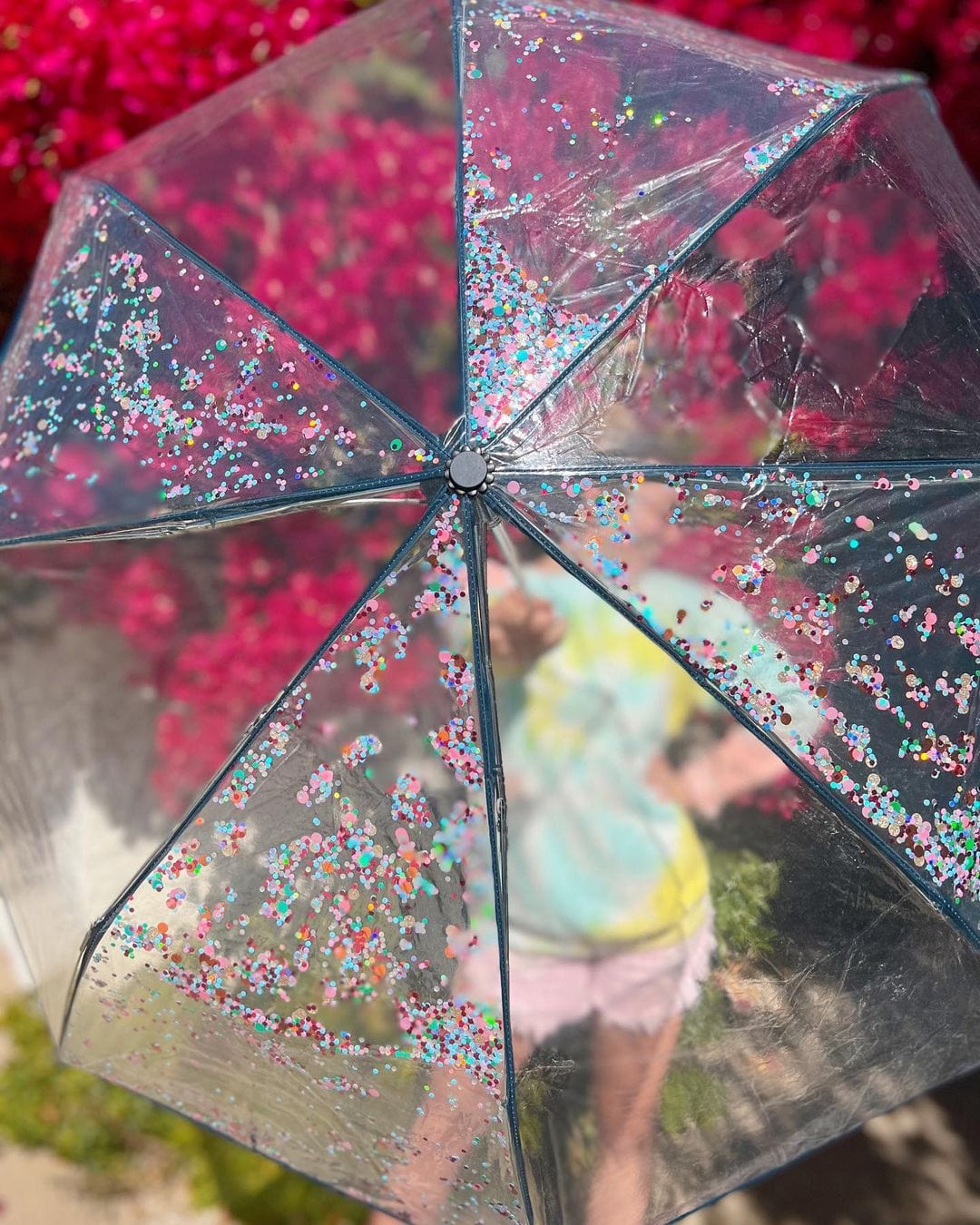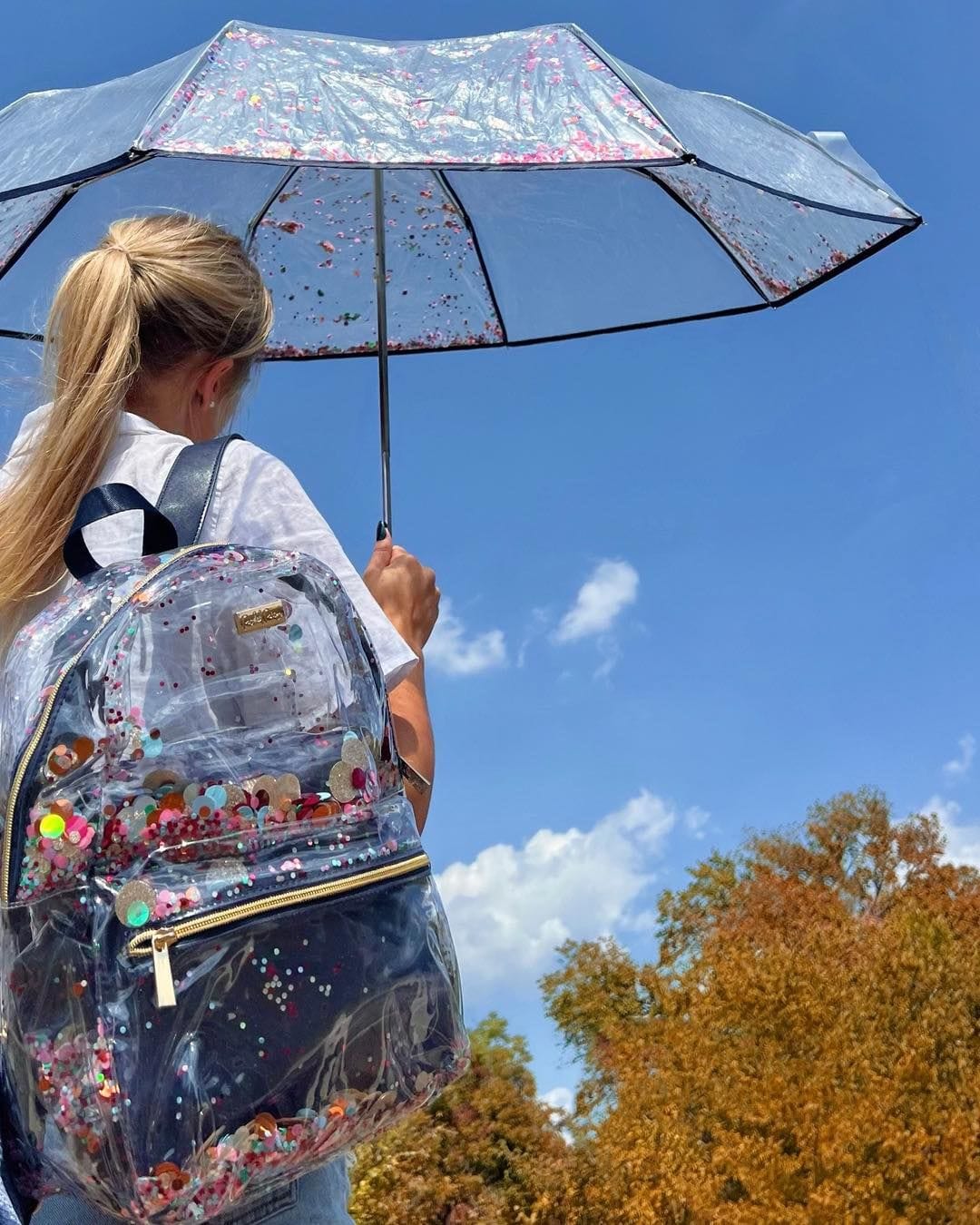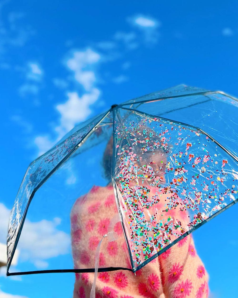 - Compact collapsible plastic umbrella filled with packed party signature Essentials confetti