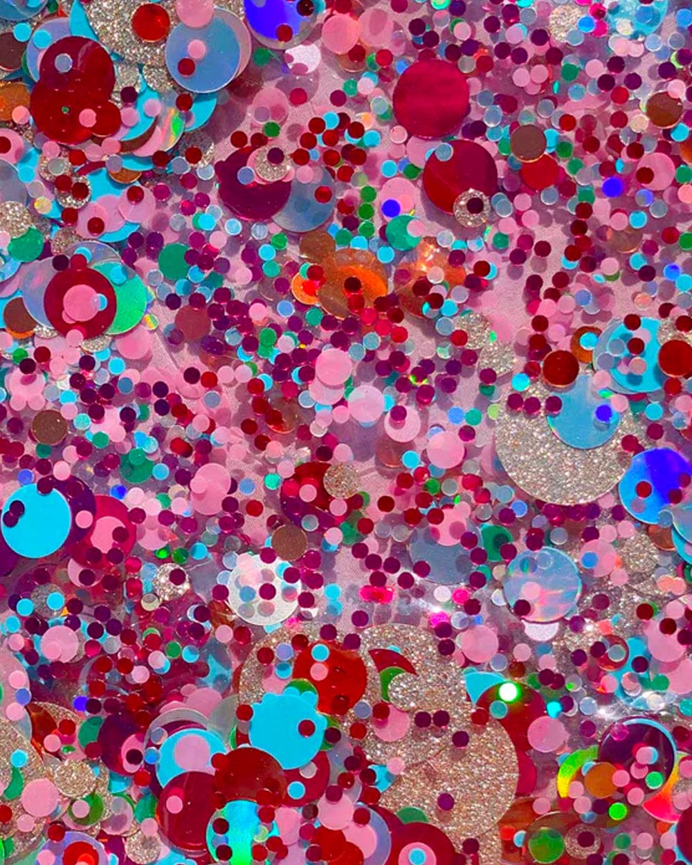 - Clear plastic made of transparent waterproof plastic with colorful confetti