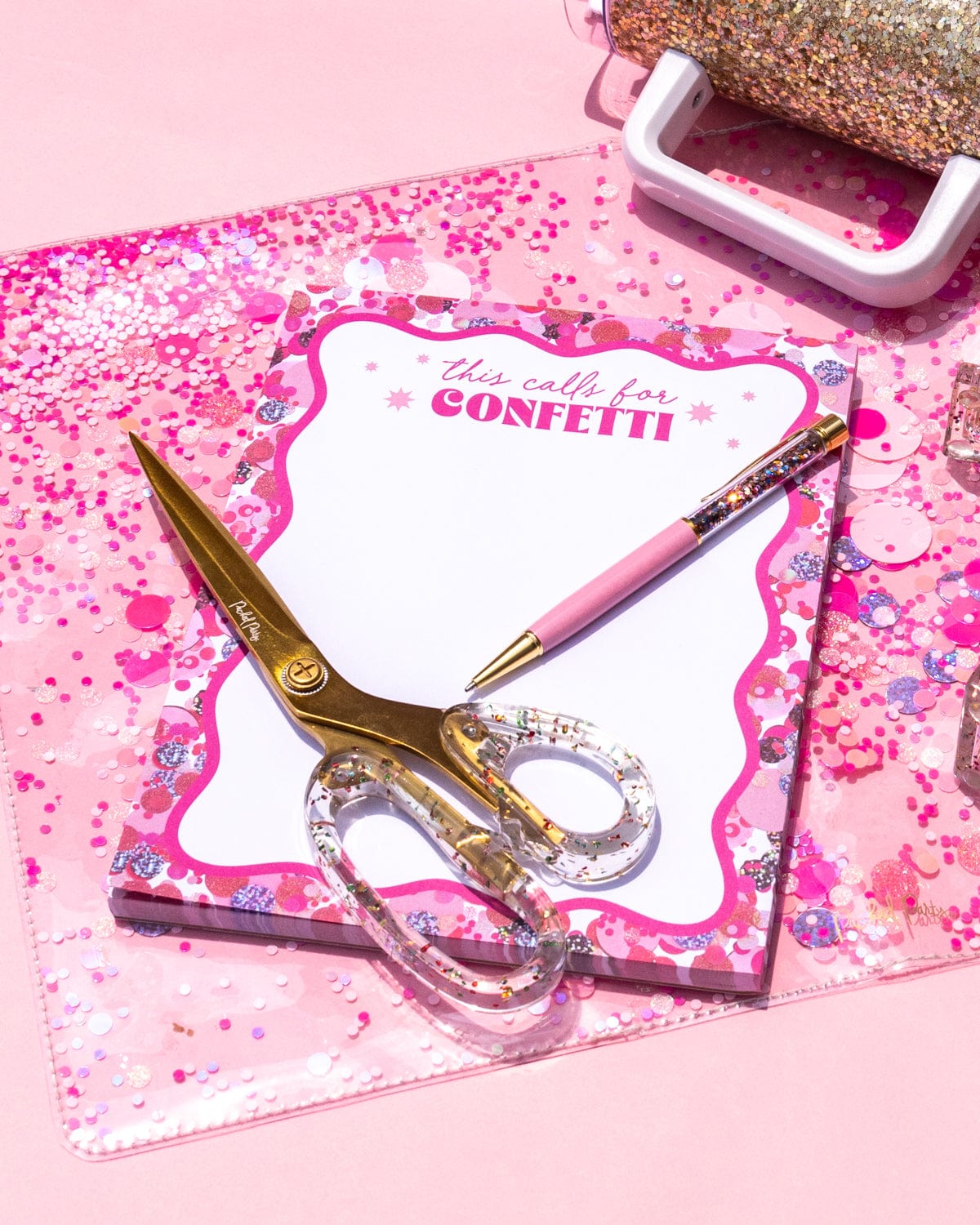 Add some fun to your desk with our This Calls for Confetti jumbo pull-pad style Notepad! Featuring 60 illustrated tear-off pages, this notepad is perfect for writing down your to-do list, important tasks, shopping lists, or notes to your besties.