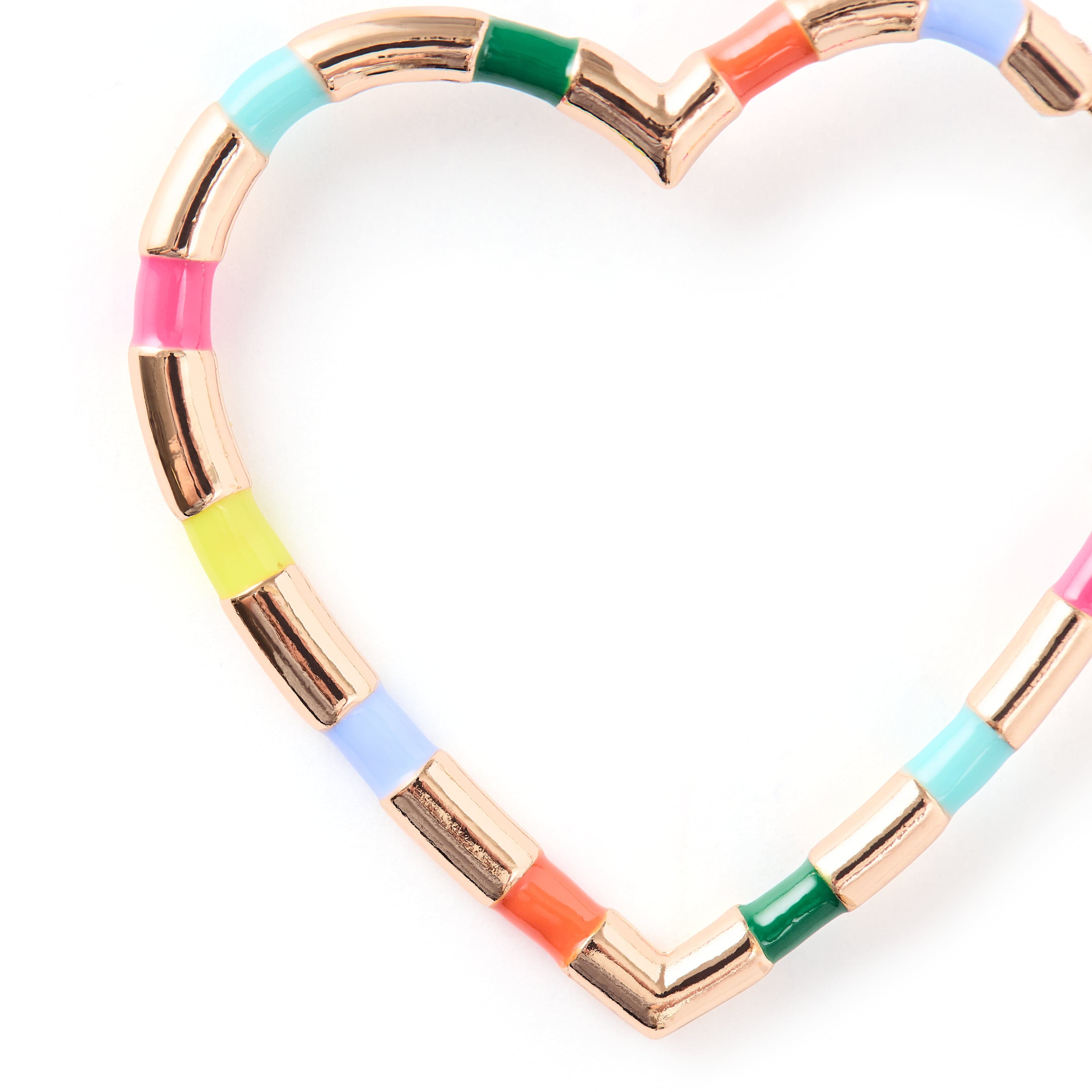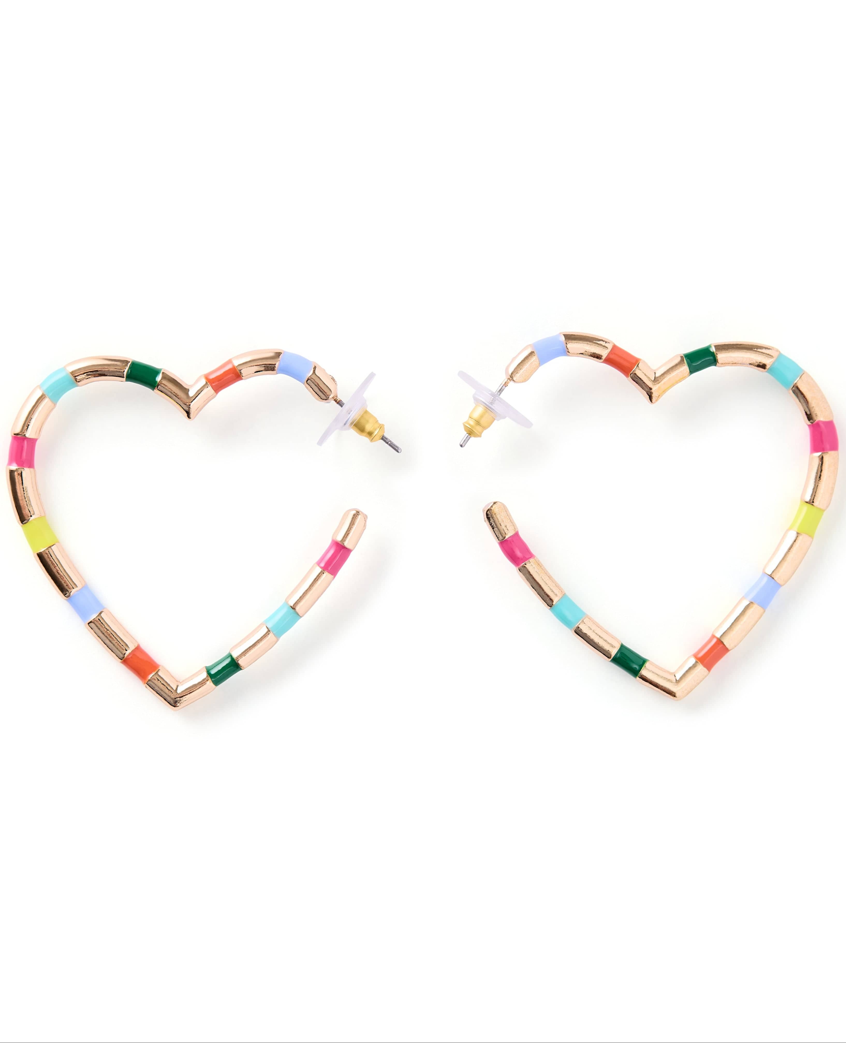 Add a pop of color (and love!) to your look with these vibrant rainbow heart hoops. Featuring bold, candy-colored accents and golden details, these earrings are equal parts playful and chic. Lightweight and easy to wear, they bring joy to any outfit—perfect for sunny days, spontaneous adventures, or when you just need a little happy hanging from your ears. Get ready to turn heads and collect compliments—because love looks good in color!
