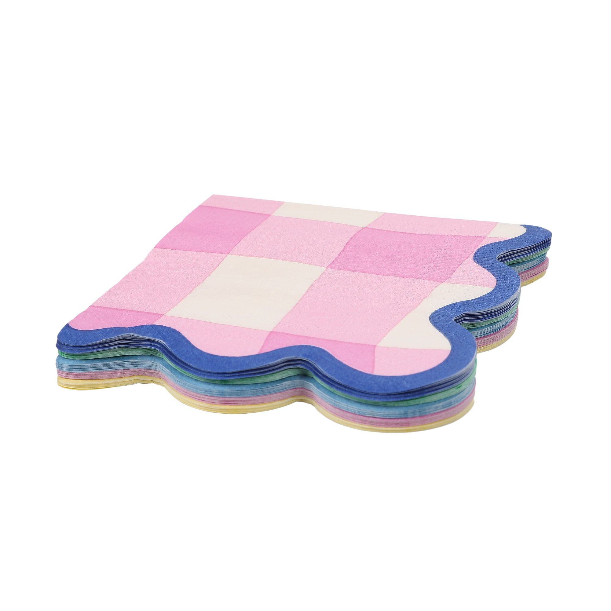 Bring instant charm to every sip + snack moment with these Colorwave Gingham Cocktail Napkins. Featuring playful pastel gingham patterns and sweet scalloped edges, this mix-and-match set adds a pop of color and a whole lot of happy to cocktail hours, brunches, picnics, and parties alike.