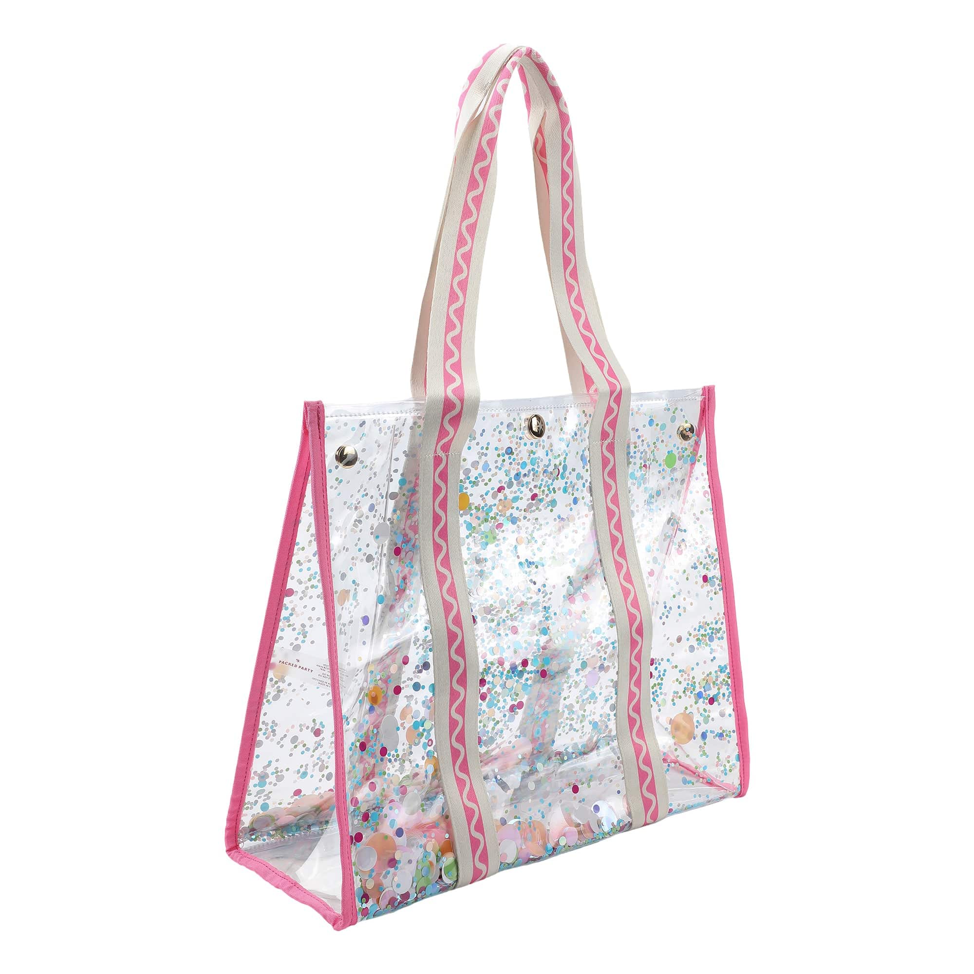 Clear vinyl tote with trapped multicolor confetti