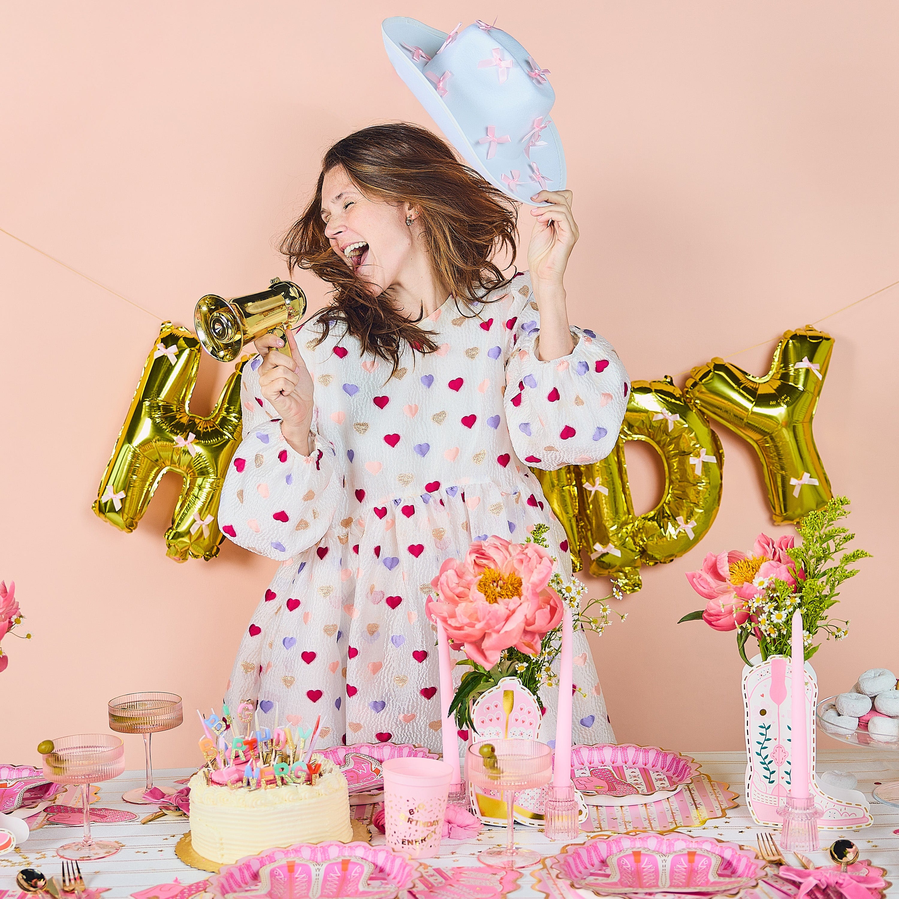 It's time to get LOUD! The Packed Party Party Starter Megaphone is here to crank up the fun! In shiny gold with a playful pink and red rickrack strap, this mini-but-mighty party must-have is made to turn heads (and make sure you’re heard)! Compact and lightweight, it’s easy to tote from bachelorettes to birthdays, or wherever your next big hooray takes you. Just add batteries, rally the crew, and get ready to cheer louder, celebrate bigger, and keep the party anything but quiet.
