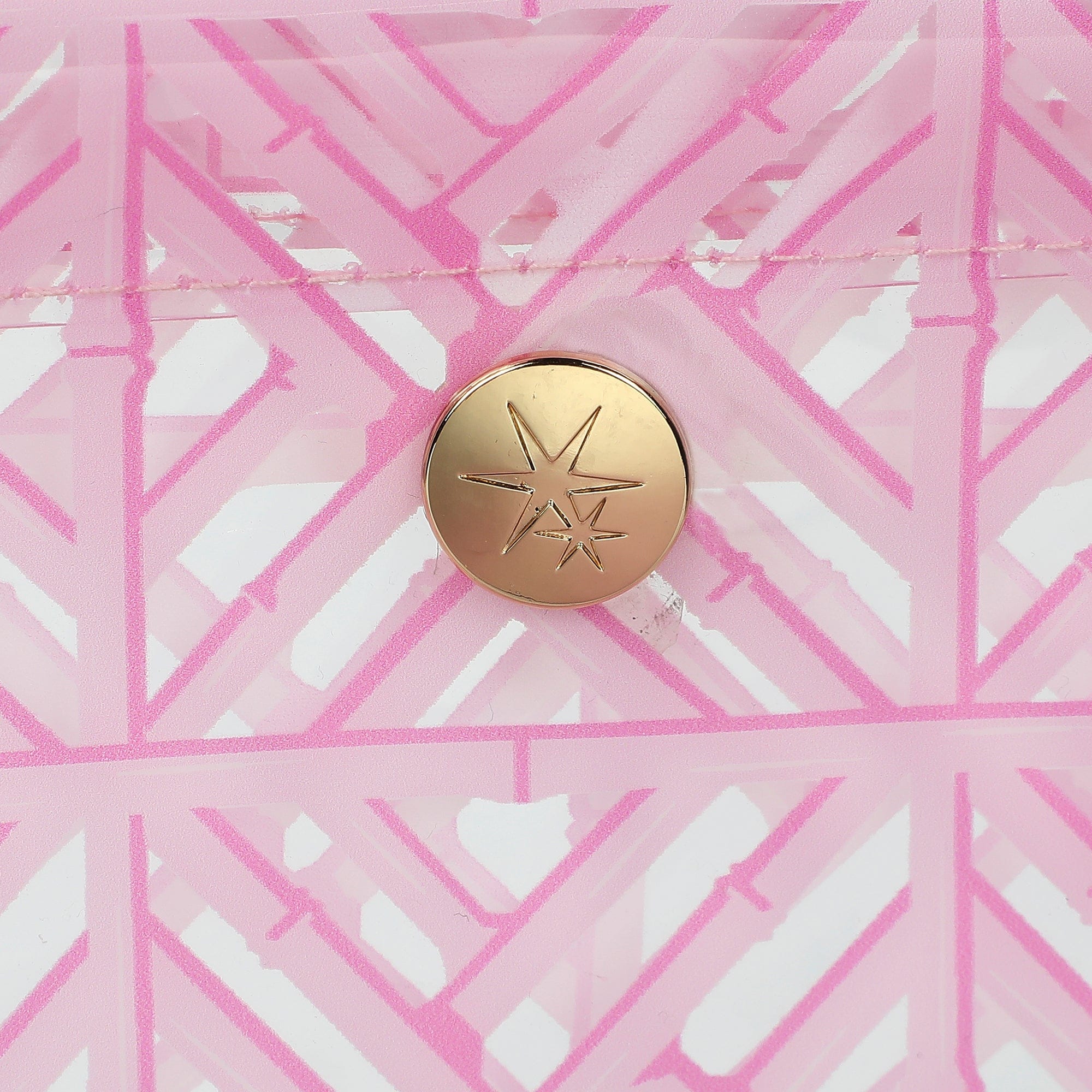 - Eye-catching pink geometric print