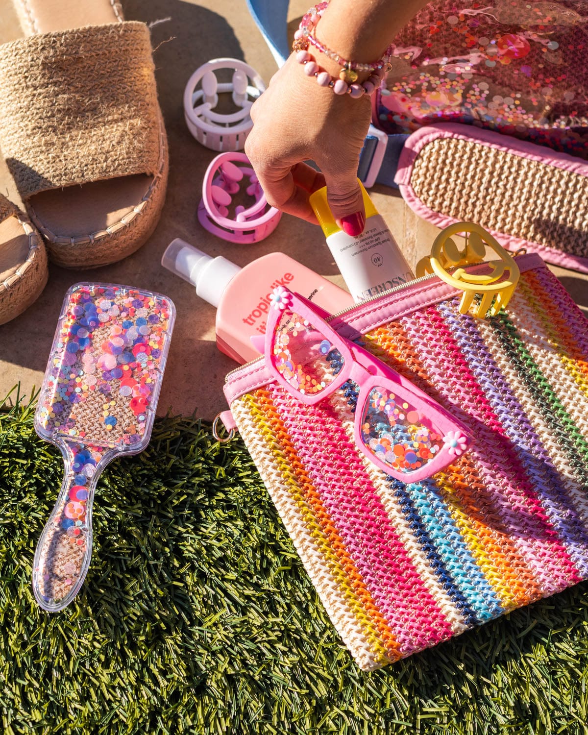 - Clear plastic lenses with Bring On The Fun confetti inside
